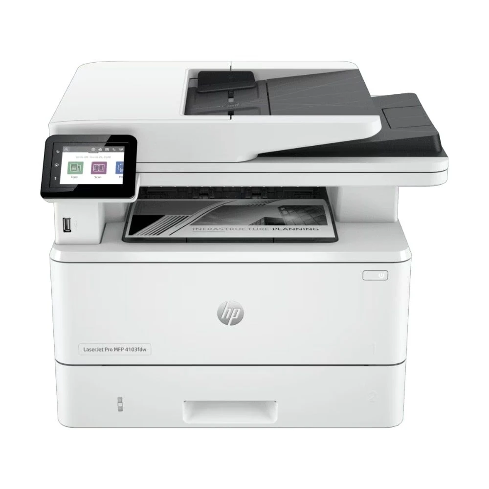 The HP LaserJet Pro MFP 4103fdw is a powerful monochrome multifunction laser printer ideal